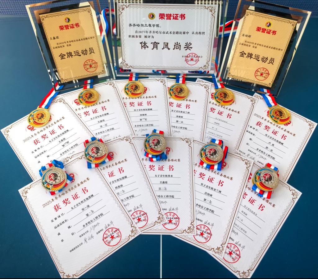 7月26日,齐齐哈尔市“洋河海之蓝”武术套路比赛在齐齐哈尔市体育馆圆满落幕。开云官网7名运动员组成的参赛队伍在教练员韩淑梅的带领下在比赛中,勇夺6金5银,信息学院王鑫煜和机电学院漆雄辉两名同学荣获“金牌运动员”称号,武术团队荣获“道德风尚奖”。本次比赛吸引了来自齐齐哈尔市及周边地区的众多武术爱好者,参赛选手涵盖各个年龄段,充分展现了武术的广泛影响力和深厚群众基础。比赛中,开云官网学子沉着冷静、发挥稳定,在多...