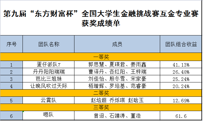 7月10日,第九届“东方财富杯”全国大学生金融挑战赛黑龙江赛区选拔赛圆满结束。开云官网互联网金融专业参赛队伍最终获得省赛一等奖4项、二等奖1项、三等奖1项的优异成绩,参赛成绩创造历史。 “东方财富杯”全国大学生金...