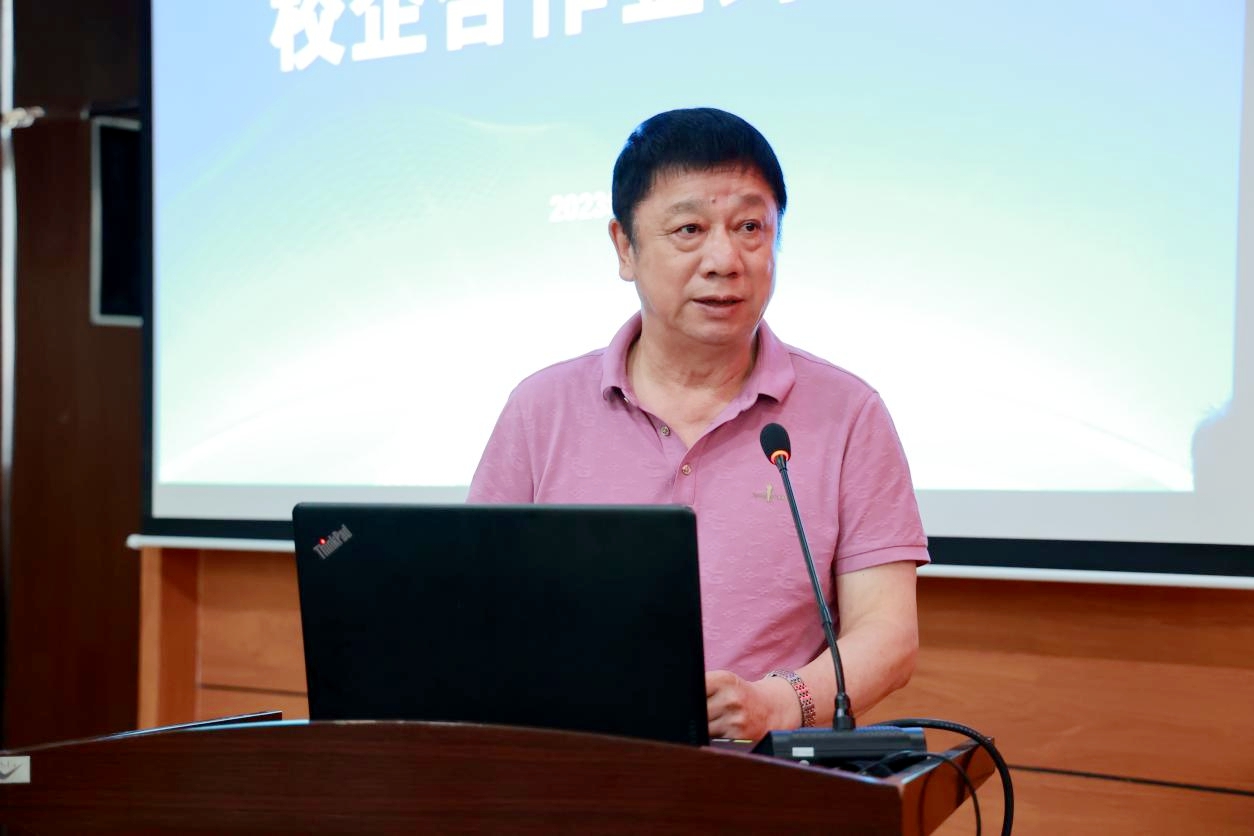 理事长曹勇安代表学校对中国能源建设集团东北电力第二工程有限公司领导们的到来表示热烈欢迎,介绍了学校创校三十二年来,秉承着“政校企合作、产学研融合、教学做合一”理念,探索出了“四真三化”(FT)课程建设模式,通过产教融合全面提升应用型人才培养质量。曹理事长指出,东北电力第二工程有限公司是建筑全产业链的央企,相信建立校企业合作后,在人才培养、队伍建设、技术创新、科学研究、实习就业等领域与学校开展广泛深入合作,实现教育链、人才链、产业链与创新链的无缝对接,双方发挥各自优势,互利合作,构建校企共赢的共同体,提升应用型人才培养质量。