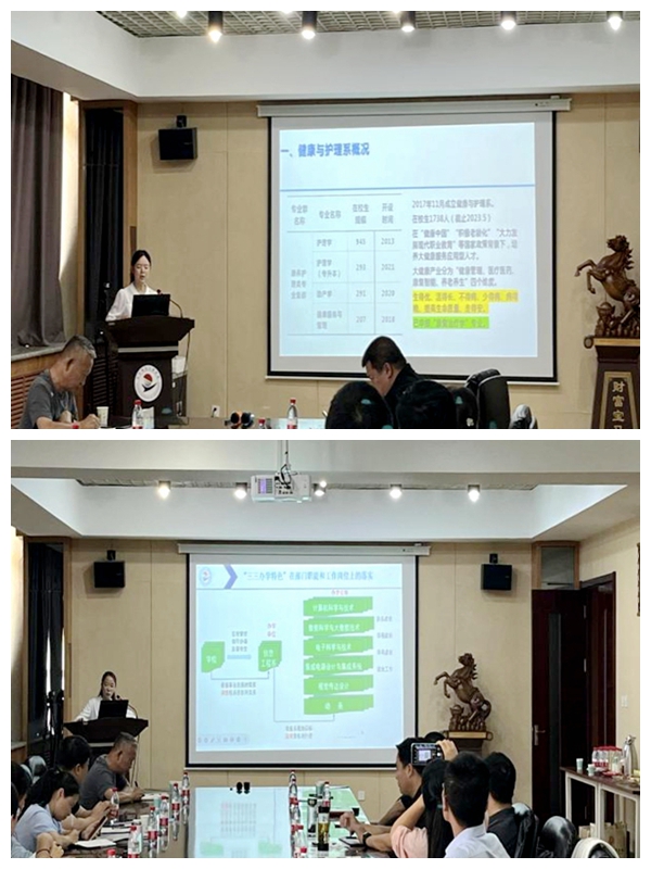 健康与护理系负责人郭玲玲、信息工程系副主任刘春媛分享了从教学单位向办学单位转变的做法和体会,同陕西国际商贸学院管理干部进行了对话交流。