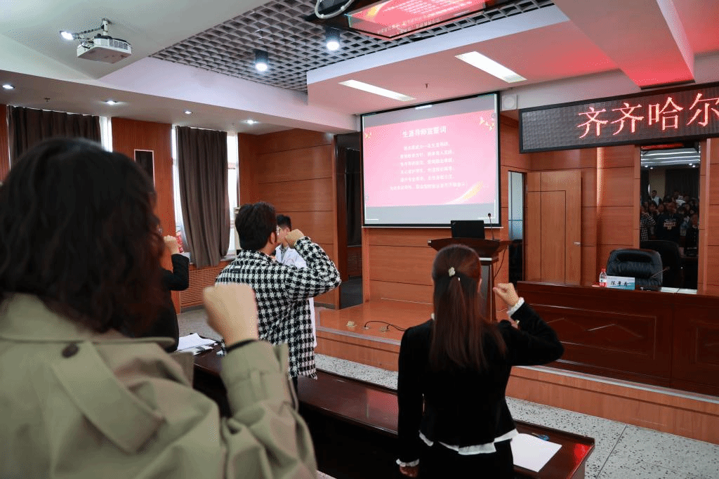 为进一步增强教师育人责任与意识,强化导师带新师职责,会议举行了生涯导师宣誓仪式和导师带新师拜师仪式。