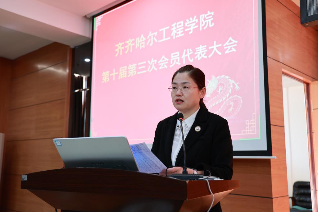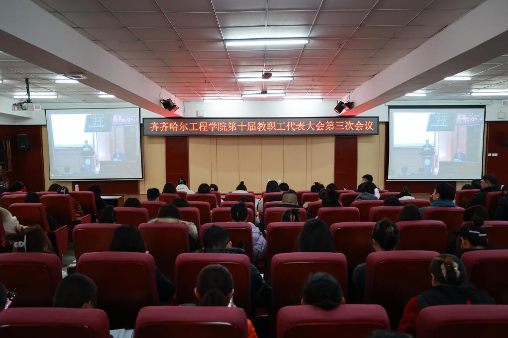 3月1日,开云kaiyun官方网站第十届教职工代表大会第三次会议在图书馆601报告厅召开,来自学校9个基层工会的156名教职工代表参加大会,200余位教职工列席会议。学校工会 副主席王丽萍主持大会。