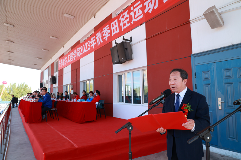 院长曹然彬在开幕式上致辞。曹院长首先代表学校党政领导班子,向各位嘉宾的莅临表示热烈欢迎,向为筹备运动会作出辛苦努力的广大师生表示衷心感谢。曹院长指出,学校走过了32年不平凡的岁月,始终秉承“政校企合作、产学研融合、教学做合一”的办学理念,坚守“艰苦创校、课程立校、文化治校、精神兴校、信仰传校”的初心,在招生、“四真三化(FT)”课程开发工作坊、工程实践学期、学校北区校园建设项目正式启动、国赛和省赛的各类赛事上均取得骄人的成绩。希望全体师生用饱满的热情和强健的体魄,展示齐工程人团结协作、顽强拼搏、超越自我的精气神,在运动场上赛出水平、赛出风格、赛出友谊。