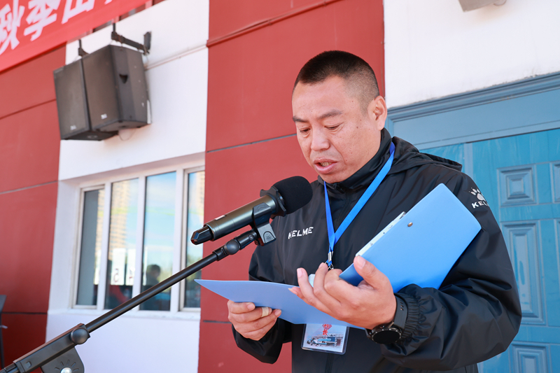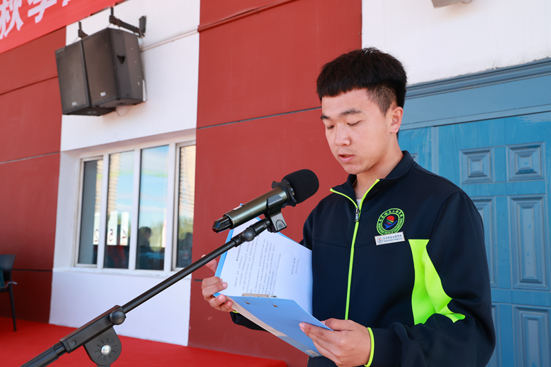 杨忠林老师代表全体裁判员庄严宣誓:严格遵守比赛规则和裁判员纪律,履职尽责,公正裁判,为同学们提供良好的竞技氛围和高效优质的服务。