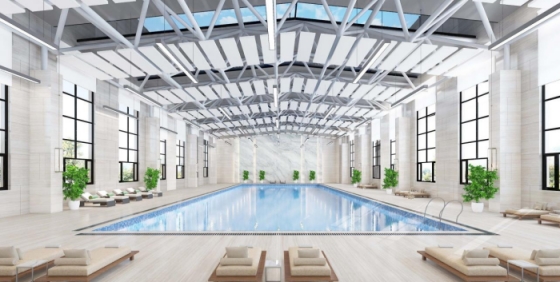 一座游泳馆、体育馆、冰上运动馆综合体,50米泳池(池底装饰世界地图)、25米池(池底装饰中国地图),并设有中医理疗药浴养生洗浴等功能,体育馆内大小球类、美育教育设施齐全。