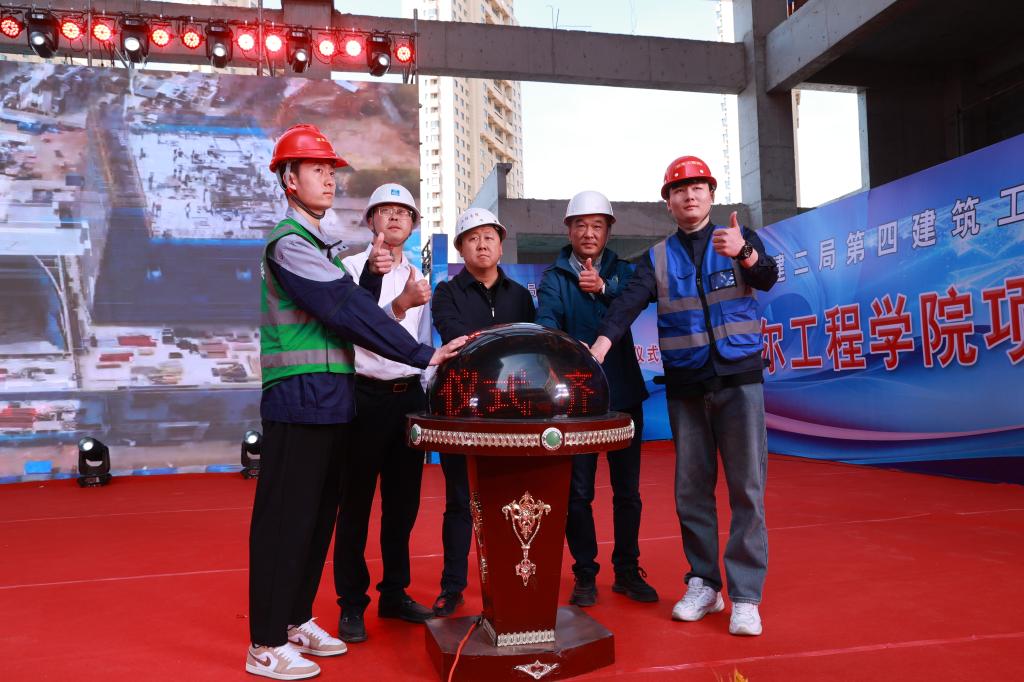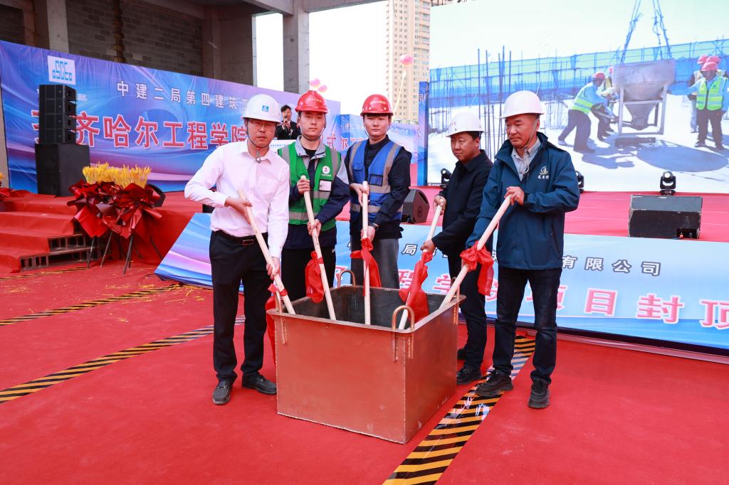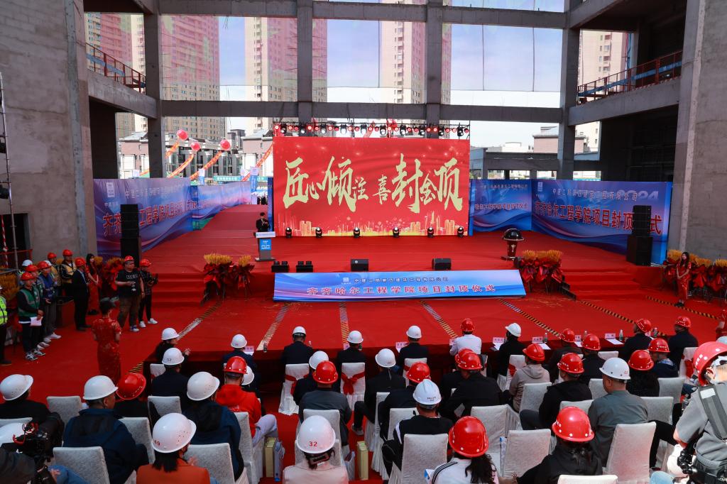 初夏已至,万物并秀。5月16日上午,学校举行北区校园一期项目封顶仪式。创校校长、理事长曹勇安教授,院长曹然彬、党委书记郭伟东、副院长白雪、副院长张静、龙沙区副区长魏巍、昂昂溪区副区长张维侠、龙沙区市场监督管理局局长张晓光、龙沙区商务局局长桑慧、昂昂溪区教育局局长陈萍、中建二局四公司党委常委、副总经理胡超,市电信公司总经理霍彬、事业部经理王本宇、事业部副总经理丛美玲,齐齐哈尔音乐家协会主席靳博峰、恒大运动中心副总经理徐影、冰飞越冰球馆总经理陈楠、黑龙江龙至信工程项目管理有限公司总工程师陈文芝、毕业校友代表黄宝健出席开幕式。学校部门负责人,项目工作人员以及建筑工程系产业学院实践班师生代表参加仪式。