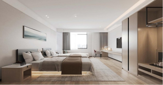 两栋公寓,可同时容纳2000人入住,公寓按星级宾馆标准设计,房间内均设有独立卫生间、温泉入户,另设有简餐台等设施。
