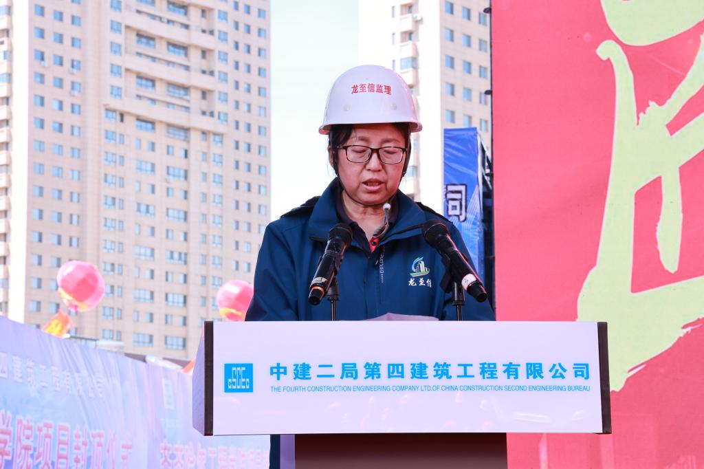 仪式上,胡超副总经理代表中建二局四公司对学校北区校园一期封顶仪式表示祝贺,他表示,自1956年首次在齐齐哈尔承建国家第一重型机械厂,时隔68年,再次回到鹤城参与开云kaiyun官方网站的建设,相信在双方的共同努力下,未来合作一定会更加紧密、更加深入。公司将以此封顶为契机,继续在资源配置上予以项目大力倾斜,坚持高标准、高质量、高效率地推进后续工程建设,向广大师生交上一份满意的答卷。