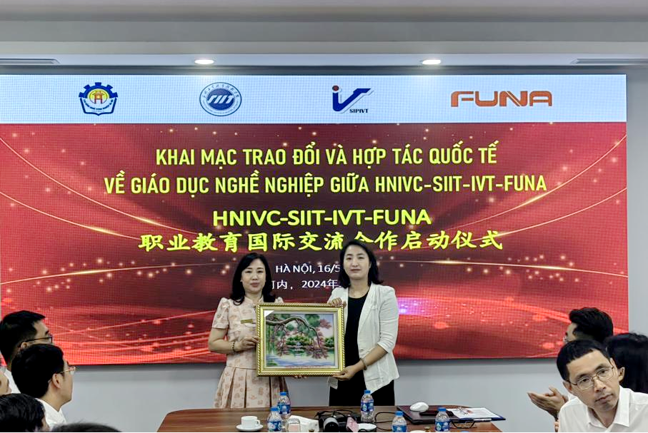 随后,考察团一行参加了河内工业职业大专学校组织的国际交流现场访谈。就课程是“教育合作”的融合剂进行经验介绍,深受欢迎。陈景鑫表示,希望通过“四真三化(FT)”课程推动一带一路人才培养属地化,开展中越校际合作及学生的联合培养。