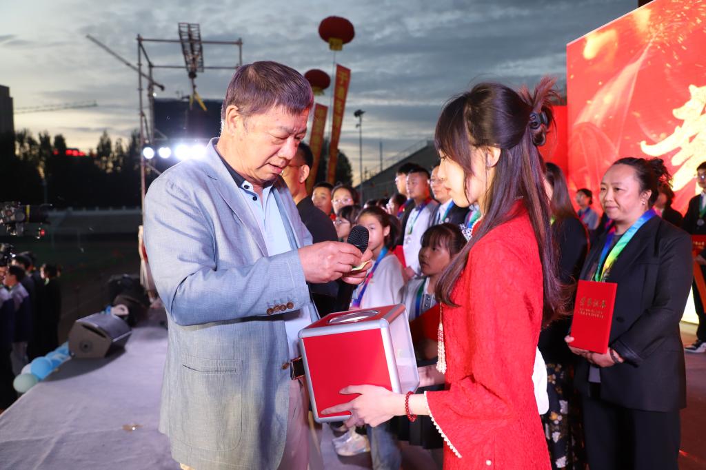 曹勇安为丁香少年颁奖并讲话。他首先代表学校向支持学校工作的工友和全体师生表示衷心的感谢。指出,丁香花香远益清,苔花如米小,也学牡丹开,毕业的学子们要学习丁香精神,追求自己的梦想,如牡丹一样,花开遍地、芳香四溢。校园北区在建的人民会堂、游泳馆、体育馆、冰上运动馆将在九月份投入使用,它将为师生搭建“同学习、同运动、共成长”的平台,丰富学生的校园生活,提升身体素质,弘扬竞技精神。希望即将步入社会的学子,在未来的工作、生活中,具有创新精神,勇于探索,以实际行动践行学校“为融入社会走进来,为服务社会走出去”的教育理念。