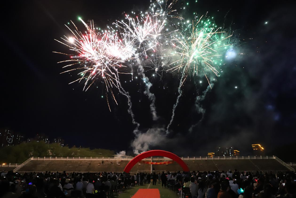 在绚烂的烟花中,毕业晚会落下帷幕,毕业生们即将踏上新的人生旅程。