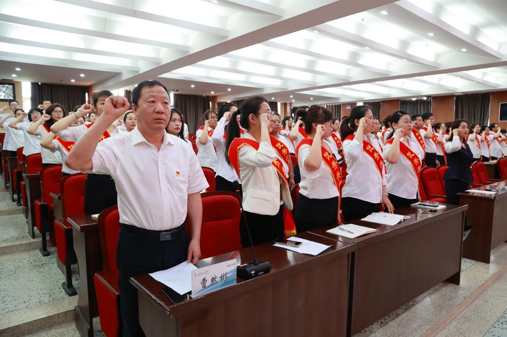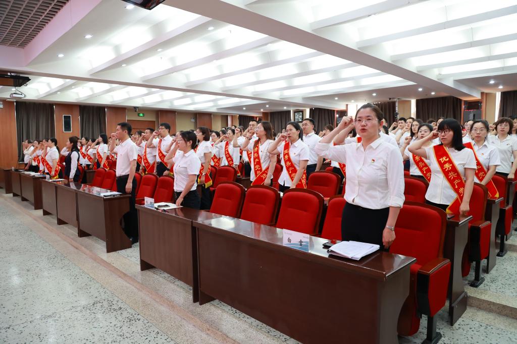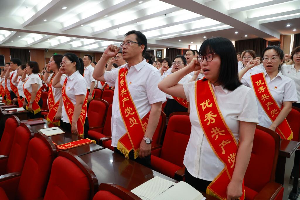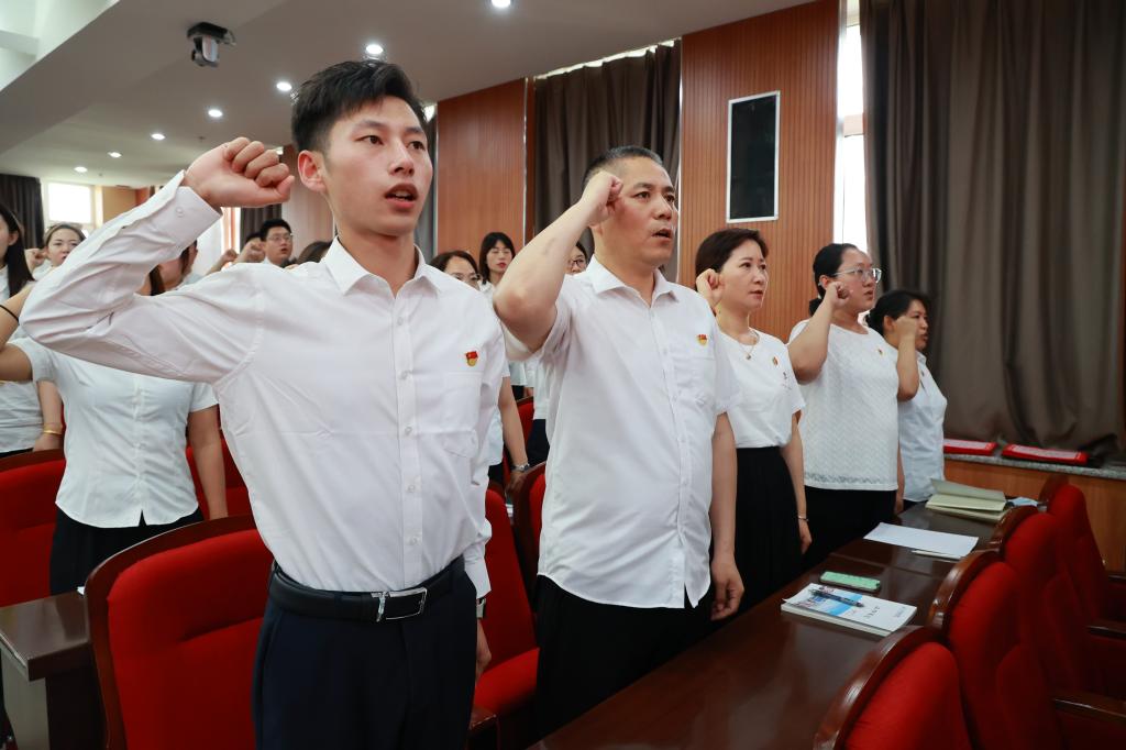 校党委委员、党委组织部部长王丹带领全体党员重温入党誓词,党员们举起右拳,庄严宣誓,表达了对党的忠诚和为共产主义事业奋斗终身的决心。