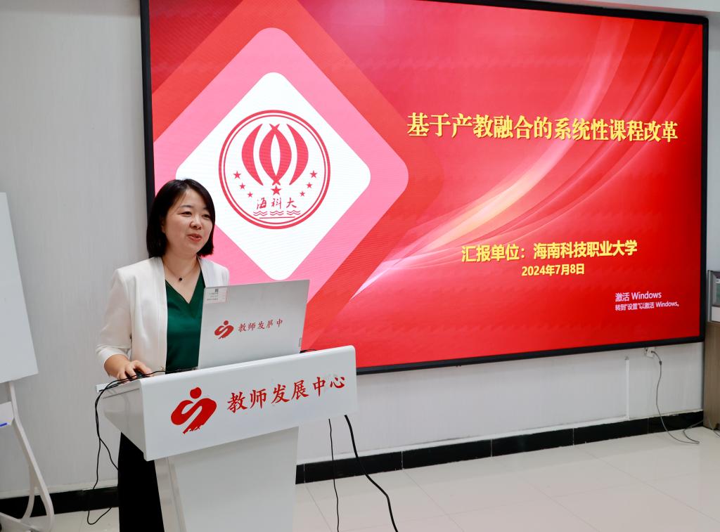 海南科技职业大学张小莹作《基于产教融合的系统性课程改革》报告,她介绍了学校基本情况,对改革总体设计、改革系统实施、改革实践成效进行了详细阐述,提出,要深化产教融合,构建融通共赢的校企育人机制;要深化产教融合,构建了制度保障体系;要深化产教融合,夯实校企合作基础。
