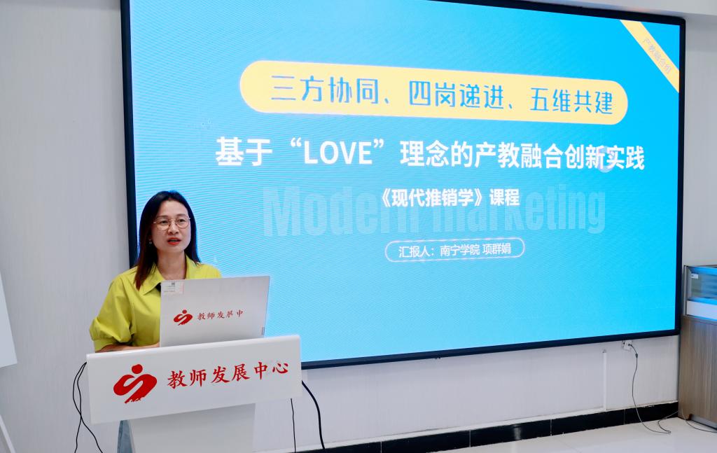 南宁学院项群娟通过课程概述、教学痛点、创新实践、创新成效四个方面作“三方协同、四岗递进、五维共建课改理念与实践”报告。在创新实践中,她提出教学环境数智化:“五库十技”赋能六大实战能力;教学活动多元化:“双实”教学完善能力结构;教学组织个性化:分阶教学满足不同学习需求;教学方法多样化:“一线多翼”激发学生学习兴趣的教学观点。