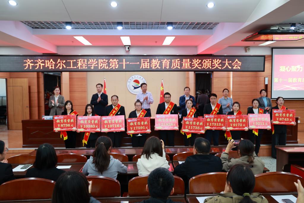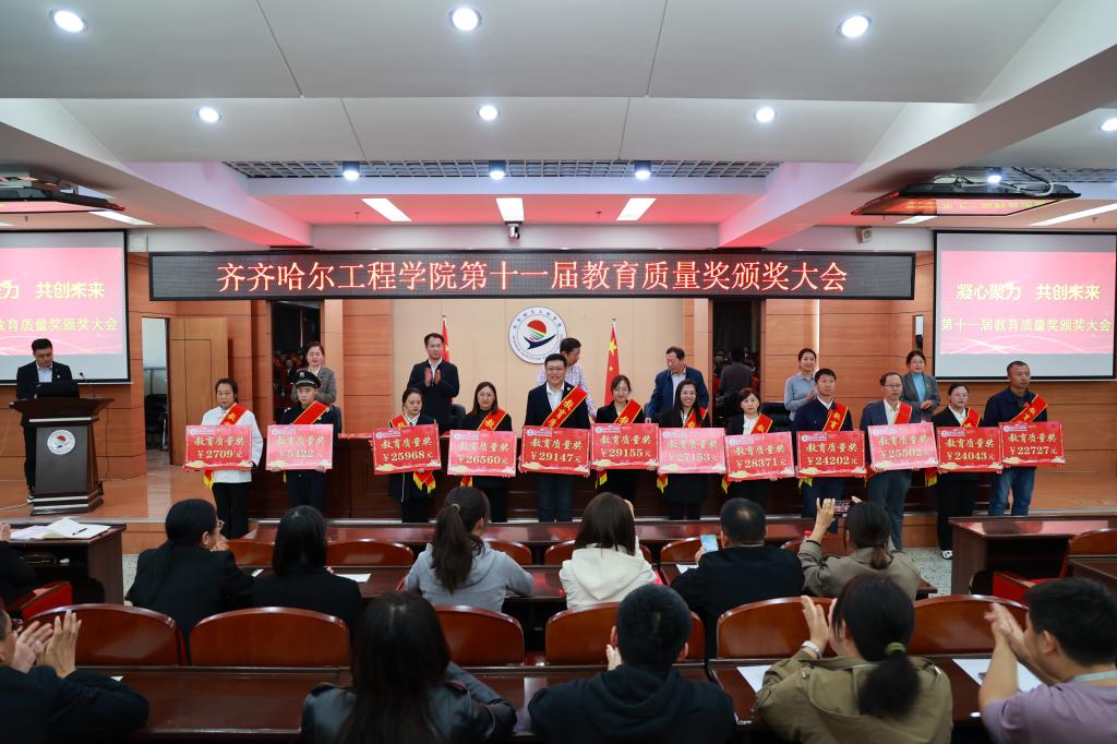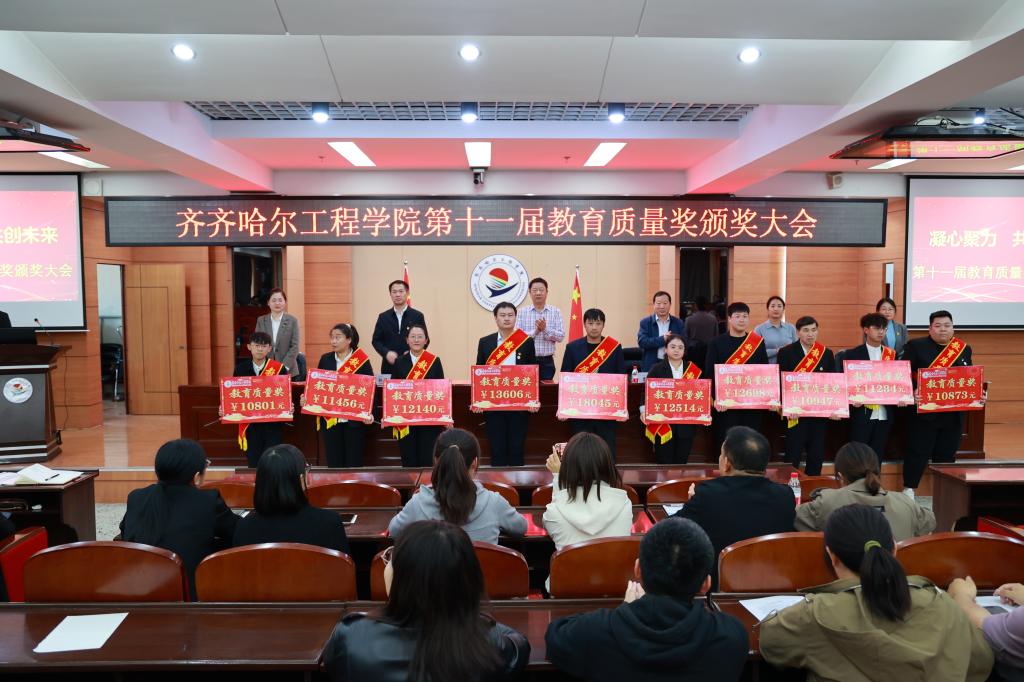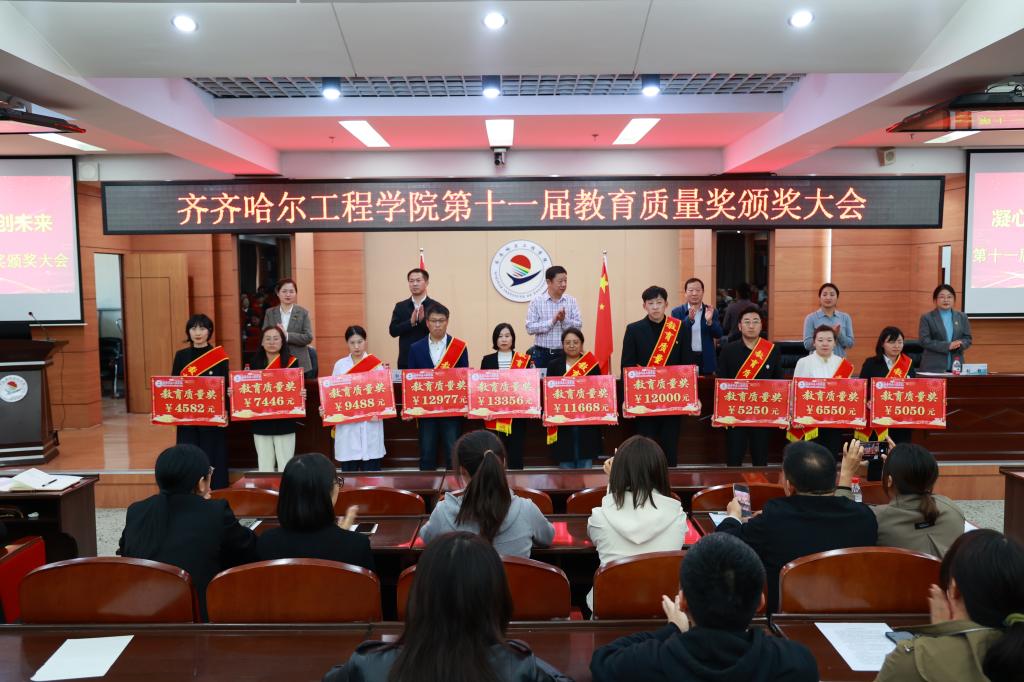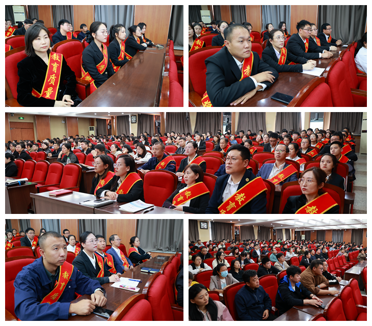 为大力弘扬教育家精神,加快建设教育强国,勇担新时代育人使命,进一步提升教育教学质量,9月30日下午,学校在图书馆601报告厅召开第十一届教育质量奖颁奖大会,理事长曹勇安、院长曹然彬、党委书记郭伟东,党委副书记、常务副院长陈景鑫,副院长白雪、副院长张静出席会议,全面质量管理办公室副主任张洪岩主持,全体教职工线上、线下参会。