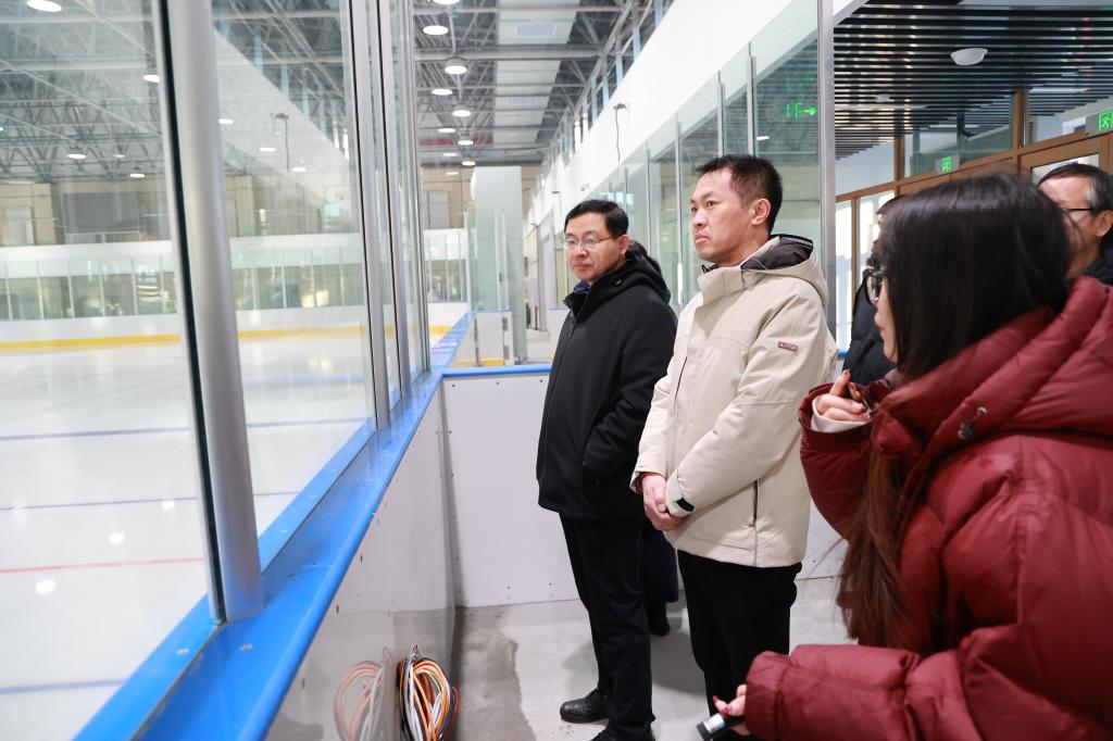 座谈会前,李维杰一行实地调研考察了开云官网北区校园冰上运动馆、人民会堂以及大健康教育实训教学中心等地。