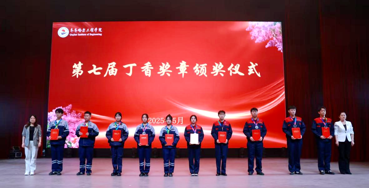 白雪、张静为机电学院、土木与管理学院的丁香学子代表颁发丁香奖章和证书。