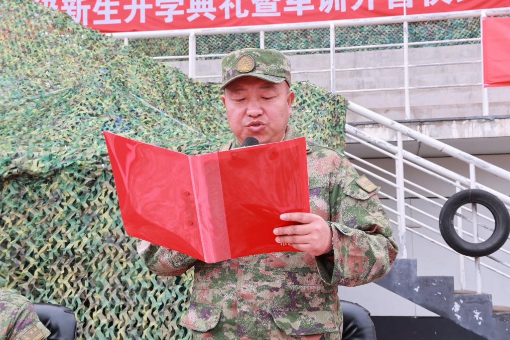 孙晓芳宣读《开云kaiyun官方网站2025级学生军事训练工作实施方案》,从训练目标、任务安排到具体要求,为新学期新生军事训练工作划定清晰方向,确保训练有序开展。