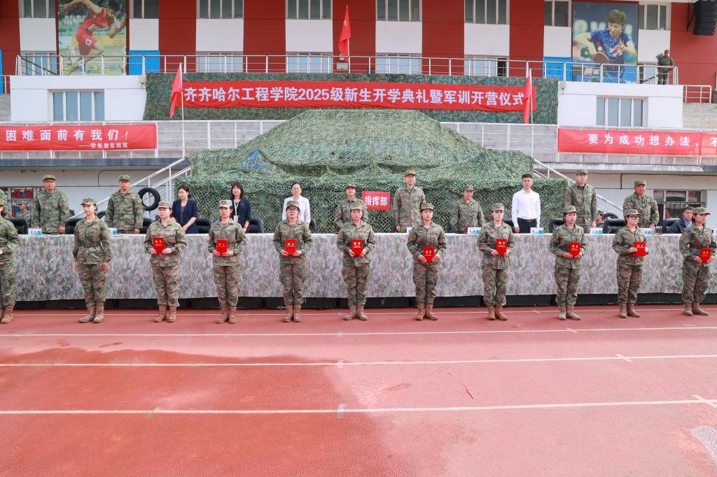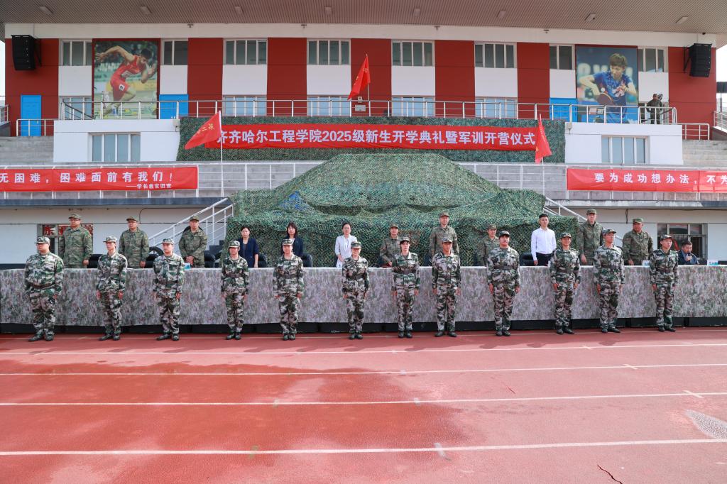 9月1日上午,学校2025级新生开学典礼暨军事技能训练开营仪式在学校体育场举行。学校党委副书记、副校长陈景鑫,龙沙区人民武装部副部长邹向华出席仪式。学生工作处处长王丽萍、副处长兼武装部部长孙晓芳,各学院院长、党委副书记,全体学长教官、参训新生及部分新生家长代表共同参加。仪式由校团委书记高士涵主持。