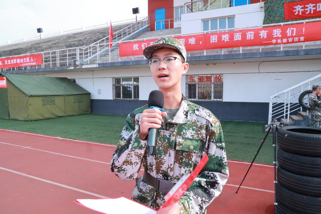 教官团政委孙赫代表全体教官发言,承诺将以严谨的态度、科学的方法带领新生完成训练。随后,全体教官庄严宣誓,铿锵誓言彰显了圆满完成训练任务的决心。