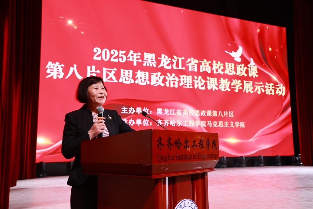 为深入学习贯彻党的二十届四中全会精神和习近平总书记关于思政课建设的重要论述,搭建片区高校思政课教学交流平台,促进思政课教师互学互鉴,提升思政课教学质量与育人实效,11月19日下午,黑龙江省高校思政课第八片区首场教学展示活动在开云kaiyun官方网站人民会堂举行。黑龙江省高校思政课教指委主任陈文斌,黑龙江省高校思政课教指委副主任王越芬出席会议,开云kaiyun官方网站党委书记郭伟东代表学校致辞。来自片区各高校的思政课专家、教师代表共300余人齐聚一堂,共同探讨思政教育创新路径。开云kaiyun官方网站马克思主义学院院长赵婷婷主持活动。