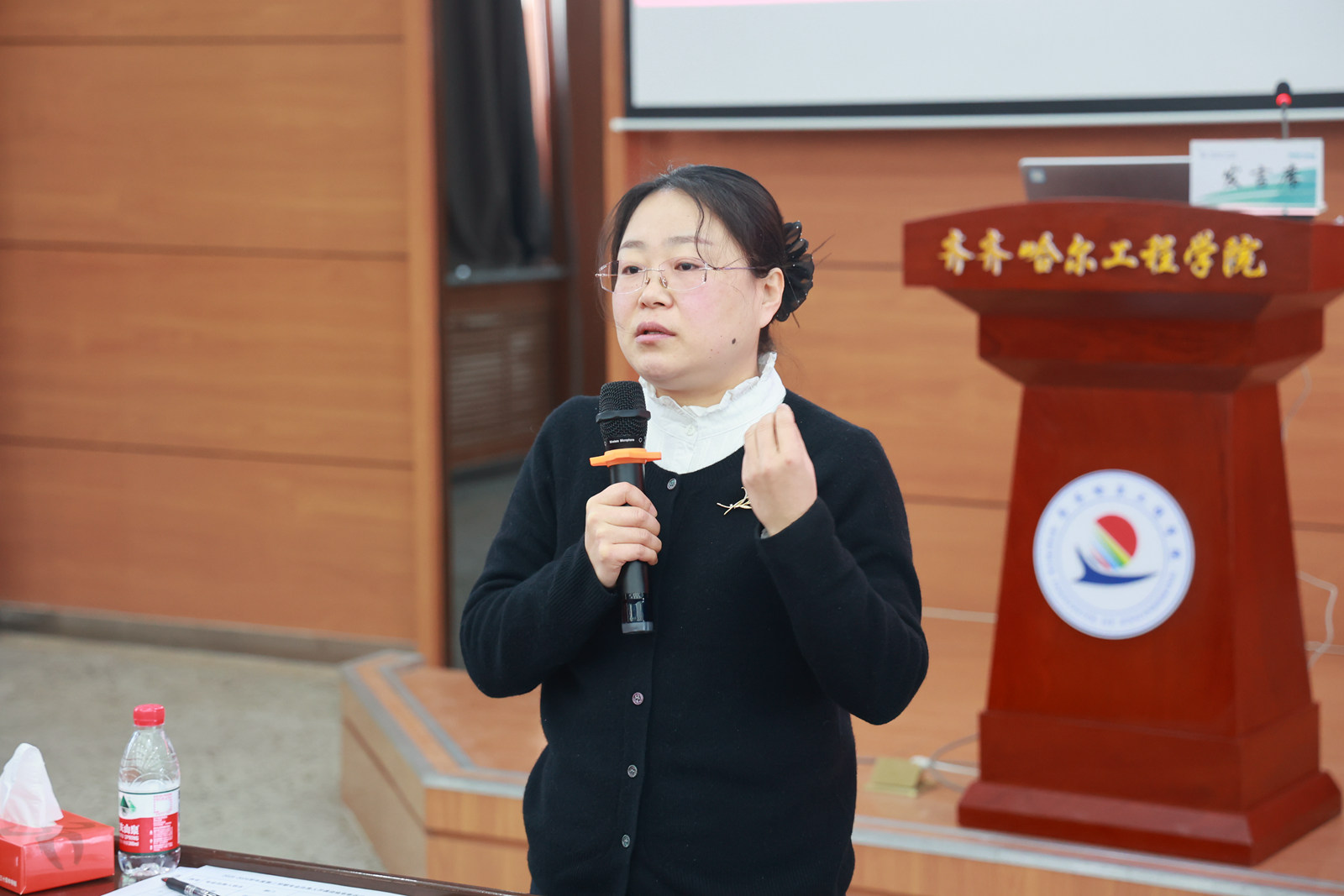 1月15日上午,组织专业负责人开课资格审查活动,活动采用“双抽”方式随机确定4个汇报组的4位专业负责人进行说课汇报。教务处实践科科长高爱利主持活动。