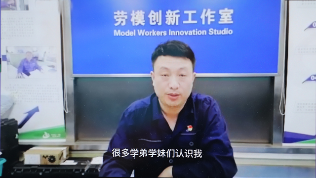 校友代表、在中国一重(大连)公司工作的2008届毕业生王刚,在线发言感谢学校培育之恩,寄语在校生珍惜在校时光,勤学苦练。
