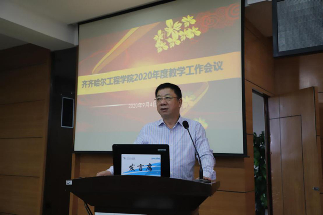 教务处处长王丹主持会议,并首先作题为《以学生为中心 优化课程建设》的教学工作报告,系统总结了上半年在线教学、第三学期教学工作取得的成绩,分别从加强课程思政建设、推进学风建设、优化课程建设、做强实践教学、开展专项评估五个方面,对下半年教学重点工作做出规划部署。