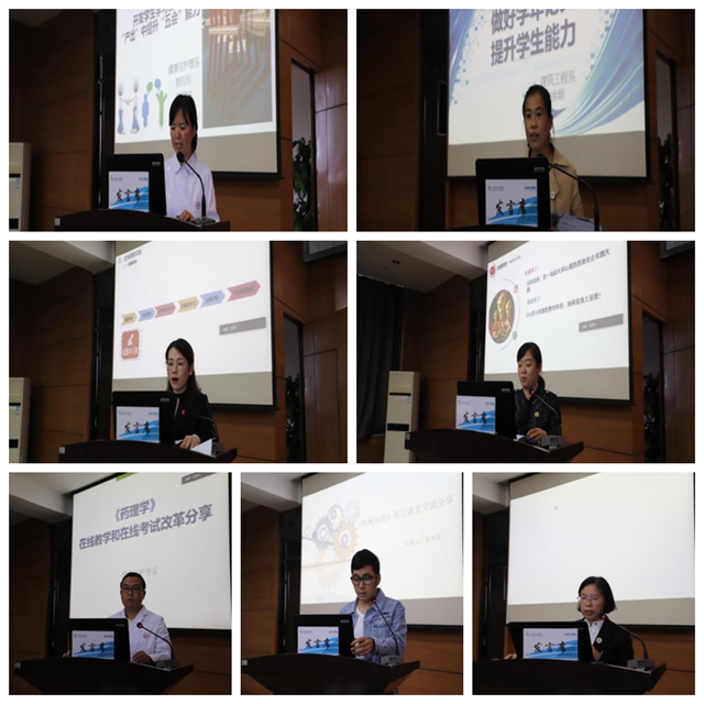 会上,来自各教学单位的7位教师代表作典型发言,分别交流课程思政的设计、“三五”能力培养、学年论文实施、在线教学模式创新、在线考试方法改革等方面的经验。