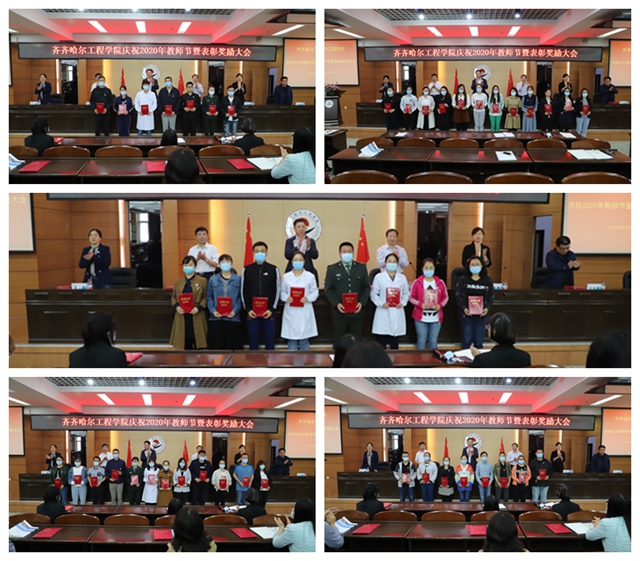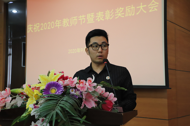 获奖教师代表、机电工程系教师敖林喆在会上的发言中说,到校工作四年来的成长,是因为身边有一大批爱岗敬业、师德高尚、堪称楷模的老师感染着自己,使自己对教育事业有了更深刻理解的结果。学生人生最重要的四年就在这里,我们不仅要教其知识,更要教其做人的道理,使其形成正确的“三观”。虽然我来校教书的时间尚短,但我从中体悟到了“没有学不好的学生,只有不会教的老师”“面对有差异的学生,实施有差异的教育”等道理。每当看到学生的成长,一种作为教师的荣誉感和责任感便油然而生。在抗疫这场没有硝烟的战争中,涌现出了太多的英雄,这些英雄正是受到了良好的教育才具备了直面艰险的勇气,才具备了面对艰险时将人民摆在前的奉献精神,可见教师的重要性,教育对于成人成才的重要性,对于一个国家的重要性!最后,他同全体教师们共勉——教师的责任重于泰山,国运兴衰系于教育三尺讲台;教师工作在课堂,成就却在四面八方。
