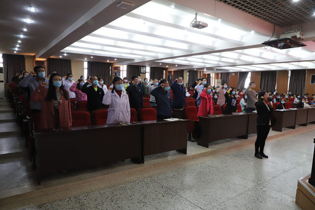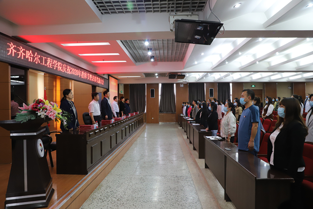 2020年加入学校大家庭的39位新教师,由管理工程系刘玉洁老师带领,面向国旗进行入职宣誓,在全体教职工的见证下,宣誓履行自己的庄重诺言,做到无愧于教师这个“太阳底下最光辉的职业”。