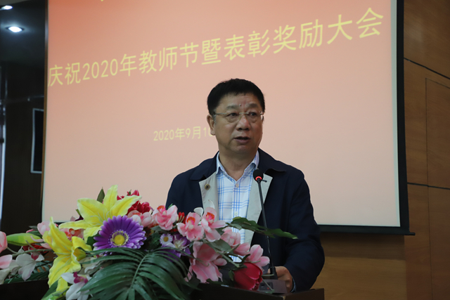校党委书记李敏义宣读《关于表彰奖励优秀教师、优秀教育工作者和师德先进个人的决定》。