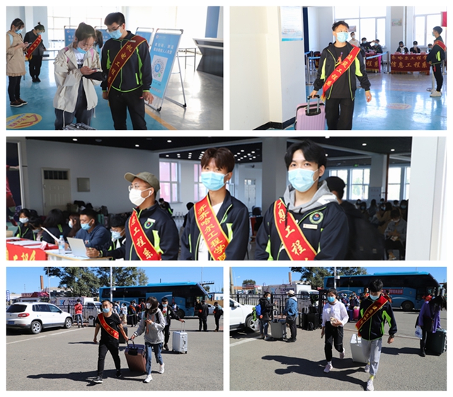 12日这天,在精准收集返校学生的回校车次、统计各个时段到齐市人数基础上,学生工作处3位老师带领4名团学干部志愿者,乘坐学校安排的3辆大客车,到齐齐哈尔火车站及其南站,共往返12趟迎接第三批返校学生。由于火车站停车场位置原因,学生出站后需要走一段过街地下通道才能到接站车处,老师和志愿者们热情帮助行李多的学生搬送到接站车前,并经过上车前逐一测量体温后,送学生们返回想念已久的校园。