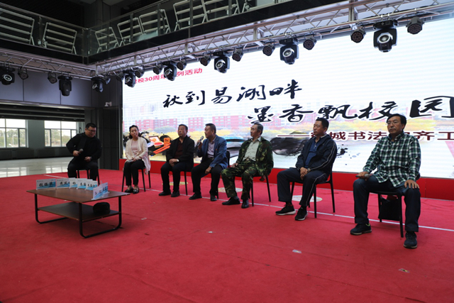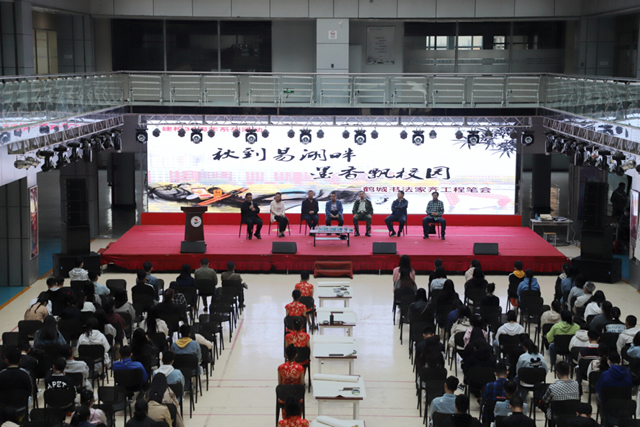 16时,在学校学生活动中心大厅内,参加笔会的鹤城书法家们与同学们就书法学习、情操修养、艺术人生和弘扬国粹等话题展开交流。