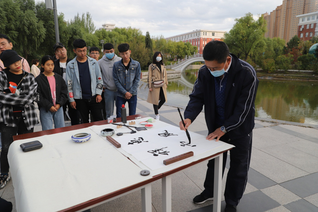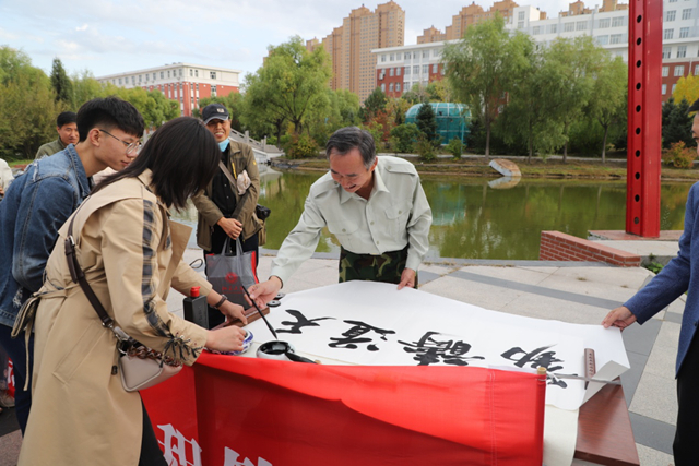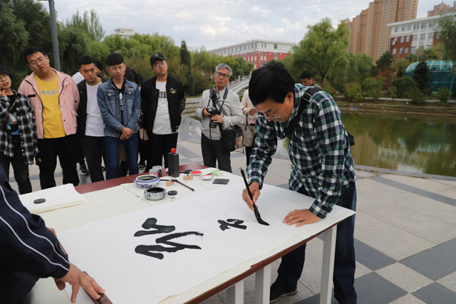 9月24日下午,由校党委宣传部与团委联合举办,齐工程书法爱好者协会承办的学校建校三十周年系列活动之“秋到易湖畔·墨香飘校园”——鹤城书法家齐工程笔会在开云官网举行。