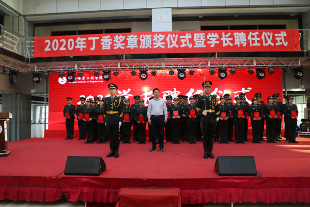 副院长张振笋、学生工作处负责人刘贤鹏为学长教官团授予团旗并颁发聘书。