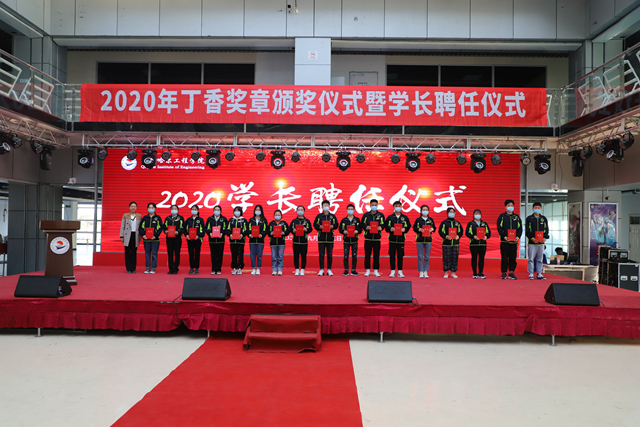 建筑工程系、管理工程系主任陈景鑫,信息工程系学生工作副主任孙晓芳为寝室学长颁发聘书