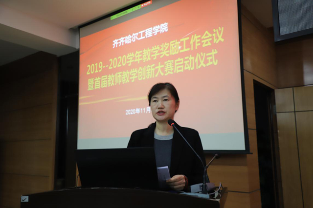 11月24日下午,学校采用线上+线下同步方式召开2019-2020学年教学奖励工作会议暨首届教师教学创新大赛启动仪式。校领导与全体干部、教学管理人员、教师代表在图书馆601报告厅参加会议,其他人员线上同步收看会议直播。