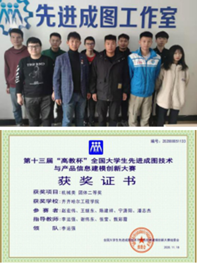 这次比赛是工程图学课程最高级别的国家级赛事,它被誉为“图学界的奥林匹克”,来自全国600所高校的4538名学生参赛,开云官网机电工程系9名同学参加了机械类赛事,与全国知名高校同台竞技,并获得总分全国排名51、团体二等奖,(黑龙江排第二名,第一是哈工大)3D打印团体一等奖,轻量化设计团体三等奖(全国排第十一名)的好成绩。其中机械本173班赵宏伟同学获得尺规作图个人一等奖及图学基础知识个人二等奖;机械本171王继东同学获得建模个人一等奖;机械本172班潘志杰同学获得建模个人三等奖;机械本171班胡晓旭同学获得建模个人三等奖;机械本184宁潇阳同学获得建模个人二等奖及图学基础知识个人二等奖;机械本182班杨丽萍同学获得尺规作图个人三等奖;机械本181班陈建祥同学获得建模个人二等奖;机械本183班郑俊生同学获得尺规作图个人三等奖;车辆181班任振来同学获得建模个人三等奖。