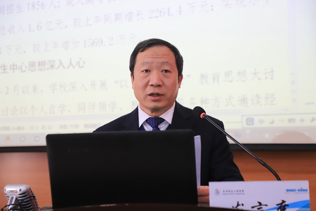 会上,院长曹然彬作题为《迎接新阶段 践行新理念 开创新格局 奋力推进学校高质量发展》的行政工作报告。报告从四个方面全面回顾了学校“十三五”规划收官之年,在以学生为中心思想建设、内涵建设、评估整改工作等方面所取得的成绩,特别强调面对学校本科办学从规范管理全面转向内涵发展、质量提升和特色凝练的新阶段,全体教职工要坚守初心,牢牢树立“艰苦创校、课程立校、文化治校、精神兴校、信仰传校”理念,应对当前所面临的变局和挑战,以时不我待、只争朝夕的劲头,奋力推动学校高质量发展。