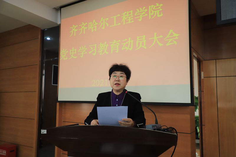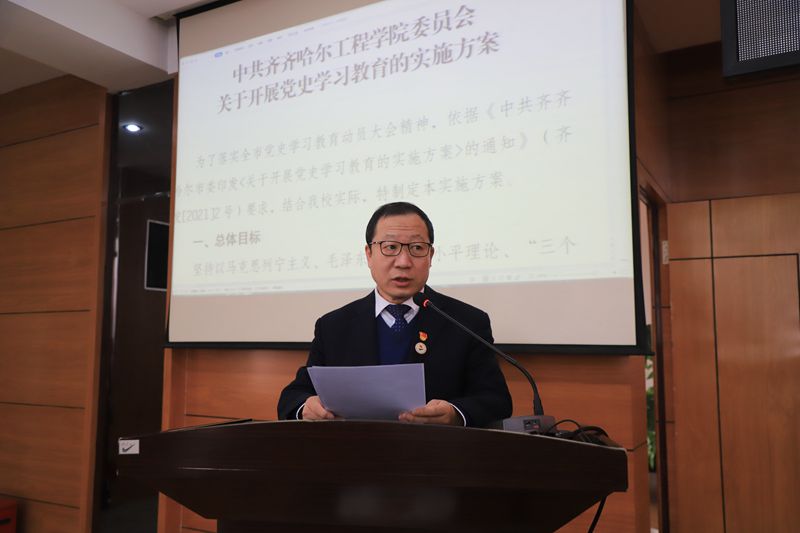 学校党委书记、校党史学习教育领导小组组长张长娟作动员报告,重点从三个方面对学校党史学习教育进行了安排部署。一是要认真学习领会习近平总书记重要讲话精神,切实增强开展党史学习教育的政治自觉、思想自觉和行动自觉。张书记指出,向前走,不能忘记来时路;走得再远、走到再光辉的未来,也不能忘记走过的过去,不能忘记为什么出发。在庆祝中国共产党百年华诞的重大时刻,在学校通过本科教学工作合格评估、喜迎创校三十周年和学校教育事业“十四五”规划开局交汇的关键节点,在全校开展好“学党史、说校史”学习教育,正当其时,十分必要 。二是全体党员、干部要以学党史为载体、以悟思想为根本、以办实事为重点、以开新局为目标,从党史学习教育中汲取智慧力量,重整行装再出发。一要学史明理,在强化理论武装上求实效。要不断深化对共产党执政规律、社会主义建设规律、人类社会发展规律的认识,深入理解把握习近平新时代中国特色社会主义思想的科学性、真理性。二要学史增信,在坚定理想信念上求实效。要坚定对马克思主义的信仰,对社会主义、共产主义的信念,对实现中华民族伟大复兴中国梦的信心,增强忠诚核心、维护核心、看齐核心的政治自觉和行动自觉。三要学史崇德,在锻造过硬作风上求实效。要弘扬优良传统,永葆对党的忠诚之心、对人民的赤子之心。四要学史力行,在勇于担当作为上求实效。要知行合一,不断提高把握大局大势、应对风险挑战、推进开局创新的能力水平。 三是要精心组织科学谋划,以高标准完成党史学习教育各项任务推动学校高质量发展。 要压紧压实责任。要创新方式方法。要加强宣传引导,要注重统筹协调。领导干部要深入基层开展走访调研,发现问题,建立台账,列出清单,明确时间表路线图,把握好进度和节奏,一项一项往前推,一件一件抓落实。要注重做好与学校中心工作、与创校三十周年庆祝活动相结合,着力营造凝心聚力干事创业、追求卓越开创新局的良好氛围。