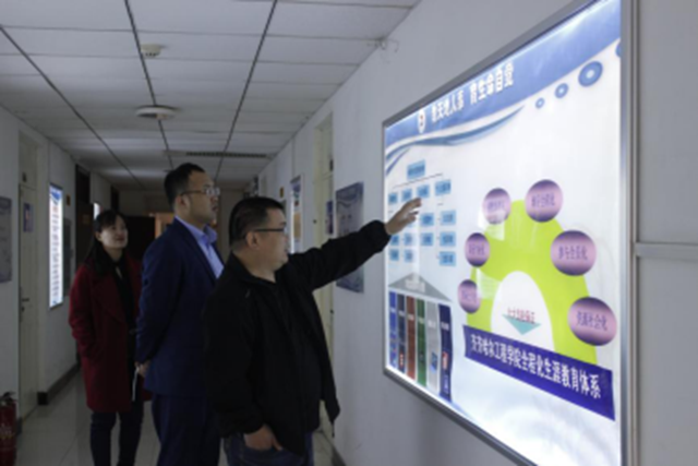 参观考察中,张振笋副院长与康静陪同王文博书记就生涯发展、就业创业、校企合作等方面进行了深入交流。