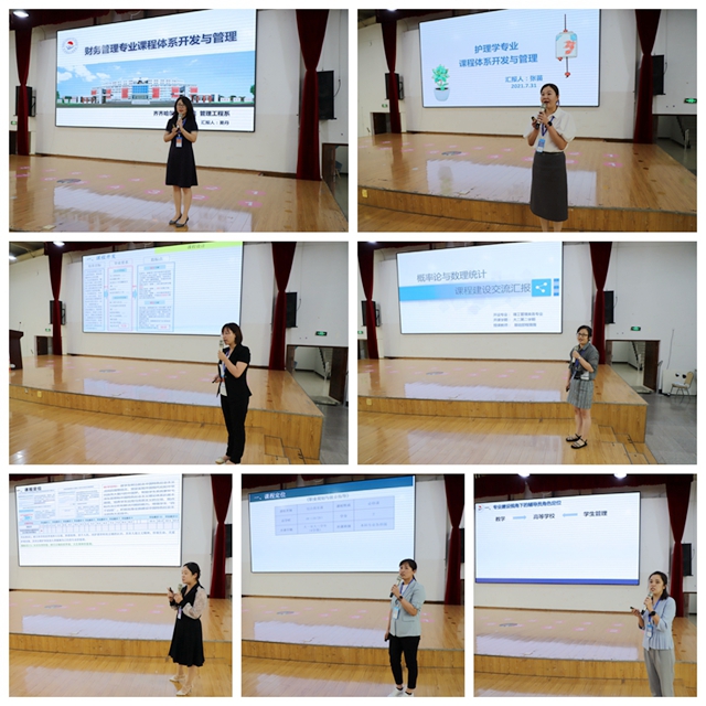 随后,专家团的夏丹老师围绕《财务管理专业课程体系开发与管理》、张苗老师围绕《护理学专业课程体系开发与管理》、刘薇老师围绕《电气工程及其自动化专业课程体系开发与管理》、程薇薇老师围绕《通识课(概率论与数理统计)》、赵婷婷老师围绕《通识课(毛泽东思想和中国特色社会主义理论体系概论)》、康静老师围绕《通识课(职业生涯与就业指导)》、高爱利老师围绕《辅导员工作》为主题,“手把手”教大家如何开发应用型课程体系,如何围绕人才培养、如何高效服务专业等方面,展示学校的课程建设成果与特色,为参训的老师们带来了一场场精彩分享。