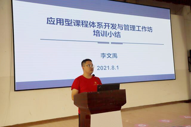8月1日下午,讲师团团长李文禹老师为此次应用型课程体系开发与管理工作坊培训做小结。他表示,在为期两天的培训中,参加培训的老师们积极性高,课后作业完成质量高,对学员团队所表现出的高度的组织性和纪律性、学习态度、出勤情况、作业完成情况做出了积极的评价。