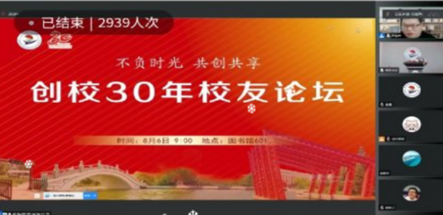 8月6日上午,学校创校30年校友论坛在线举,创校校长、理事长曹勇安出席论坛,并做主题报告,6位校友发表精彩演讲,近3000名校友在线参与互动。