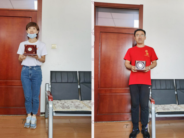 获得纪念章的教师分别为的财务处的马莉、胡思霞、王瑜,工会办公室孟凡林。