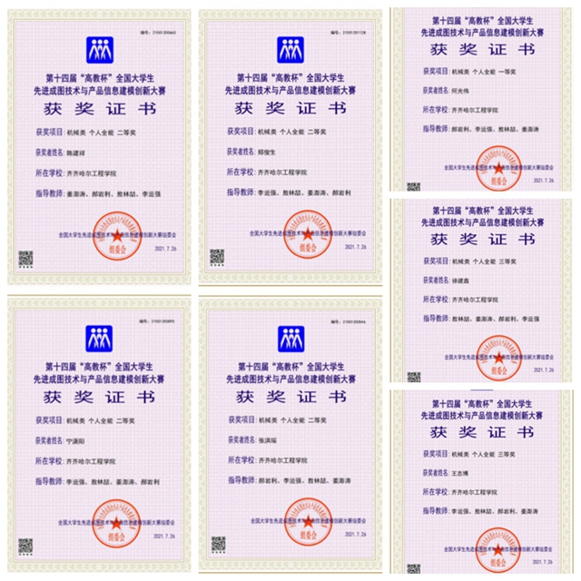 “高教杯”全国大学生先进成图技术与产品信息建模创新大赛是工程图学最高级别的国家级赛事,被誉为“图学界的奥林匹克”。机电工程系成图工作室于2021年1月20日开始筹备此次大赛,指导教师团队由机电系机械专业长敖林喆、机械专业教师郝岩利、姜澎涛和机械制图教研室负责人李运强四名老师组成。参赛团队继2020年获得全国二等奖和2021年5月份获得全省一等奖后,毫不松懈,不骄不躁,继续提升训练强度,实现了摘得全国一等奖的目标。