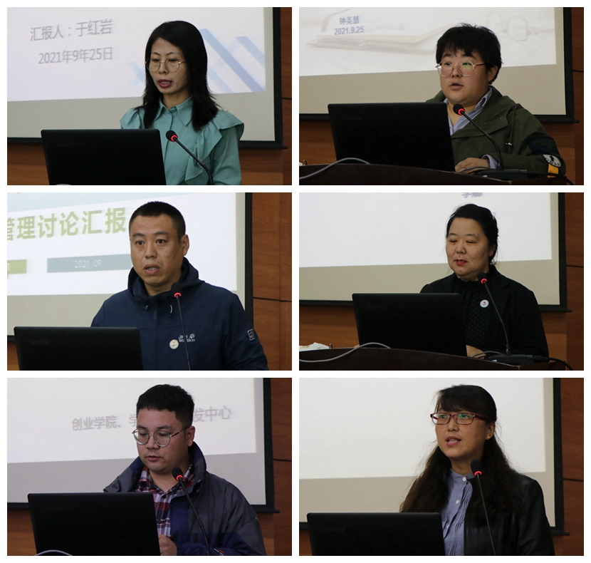 9月25日上午,学校组织骨干学习班成员开展讨论汇报活动。校领导蒋春艳、姜岩,以及部门负责人、汇报选手、点评人员在图书馆601室参加本次活动,其他骨干学习班成员线下收听收看。