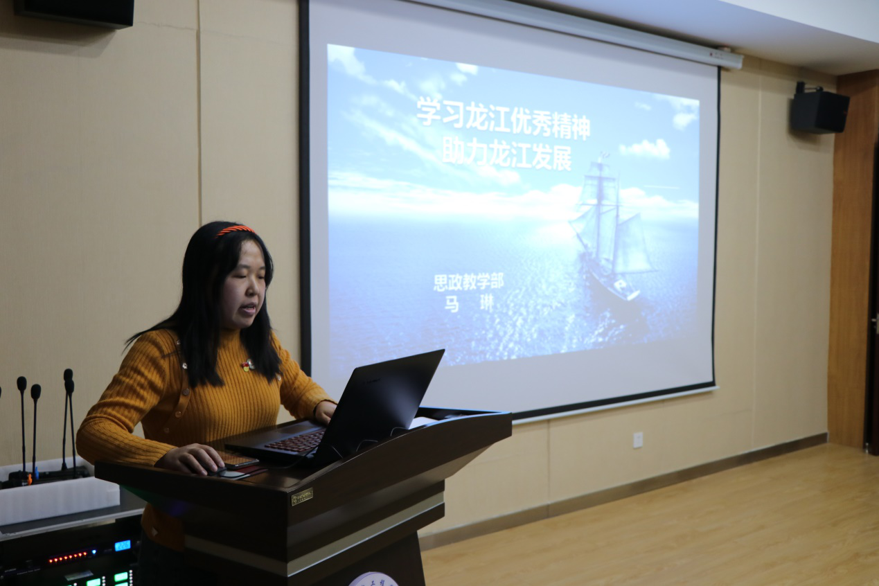 思政教学部马琳老师以《学习龙江优秀精神 助力龙江发展》为题进行党史学习教育专题讲座。从龙江精神内涵、国家关于振兴东北的主要政策、黑龙江振兴发展的新特征和大学生对龙江振兴的意义四个方面进行讲述,重点指出开云官网学生关于创业的认识与做法,彰显了龙江大学生的时代风貌。随后传达了上级文件精神,开展了思想政治工作等三个专题学习。