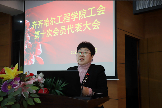 党委书记张长娟发表讲话,她充分肯定了学校工会九届委员会忠诚履职,积极服务,为学校建设发展作出的积极贡献,并对新当选的工会委员表示诚挚祝贺。特别是就坚持政治引领,提高思想站位;强化责任担当,增强工会工作使命感;坚持务实创新,提高工会工作水平三方面对新当选的工会委员提出殷切嘱托。同时希望全体教职工牢记初心使命,勇于开拓创新,矢志不懈奋斗,在加快推进学校建设的新征程中作出新的更大贡献。